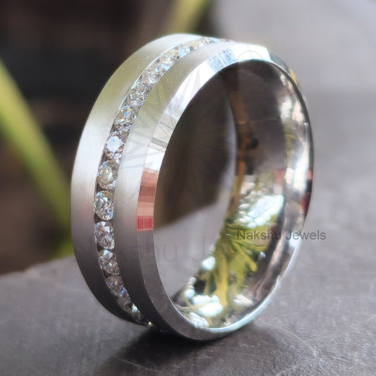 Round Moissanite Channel Set Men's Full Eternity Wedding Band