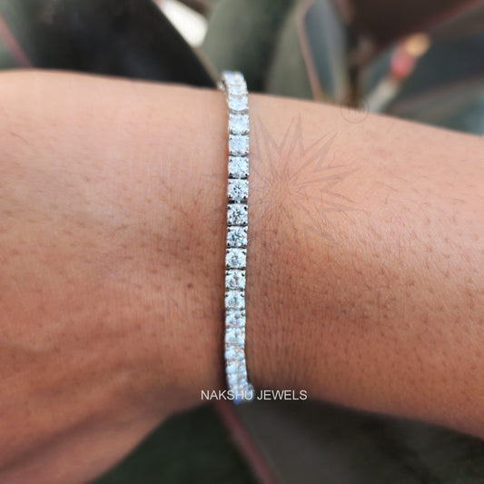 Dazzling 6.0 MM Round Moissanite Four Prong Silver Tennis Bracelet