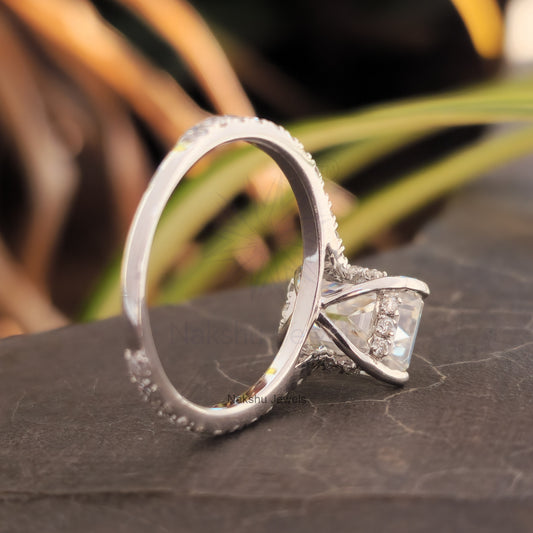 Modern Oval Hidden Halo Moissanite Engagement Ring for Women