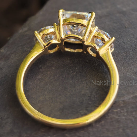 Cushion Cut Three Stone Moissanite Engagement Ring