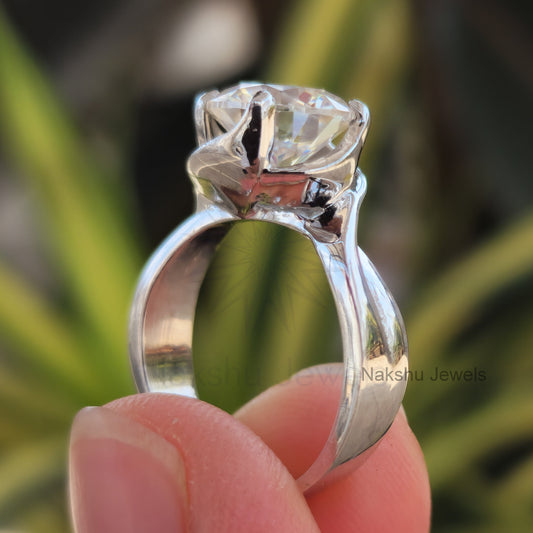 Portuguese Cut Moissanite Solitaire Engagement Ring