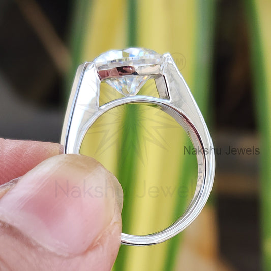 Round Cut Tension Set Moissanite Solitaire Engagement Ring
