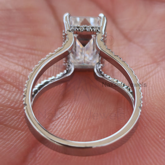 Split Shank Emerald Cut Moissanite Pave Engagement Ring