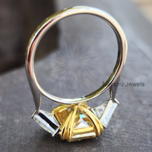 Champagne Yellow Radiant Cut Moissanite Three Stone Engagement Ring