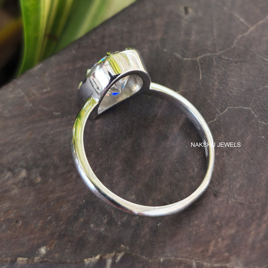 Emerald and Pear Cut Moissanite Two Stone Engagement Ring