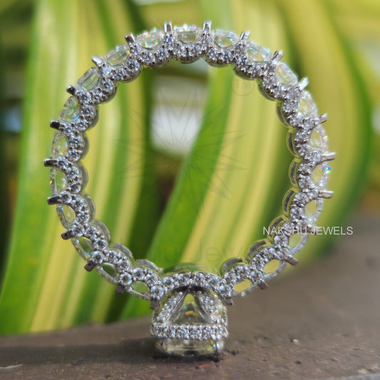 Round Moissanite Pave Engagement Ring Set With Curve-V Shape Band