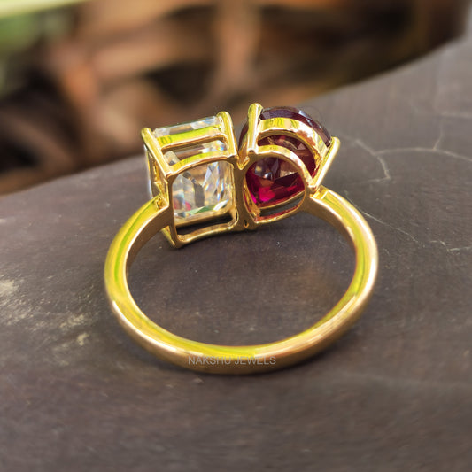 Toi Et Moi Emerald and Pear Cut Two Stone Moissanite Engagement Ring