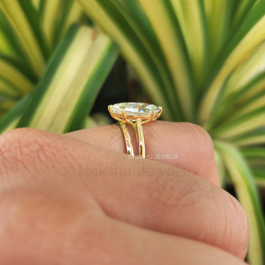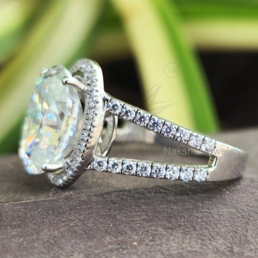 Split Shank Oval Cut Moissanite Halo Engagement Ring