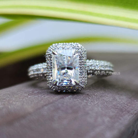 Cushion Cut Moissanite Hidden Halo Pave Engagement Ring