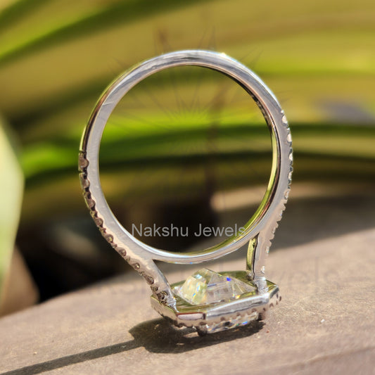 Emerald Cut Moissanite Halo Pave Engagement Ring