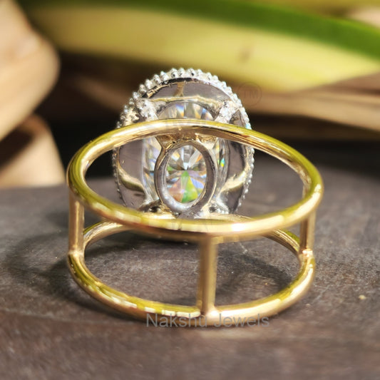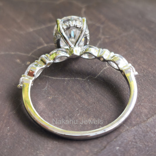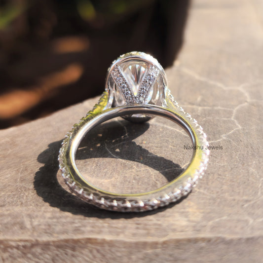 Oval Cut Moissanite Hidden Halo Engagement Ring