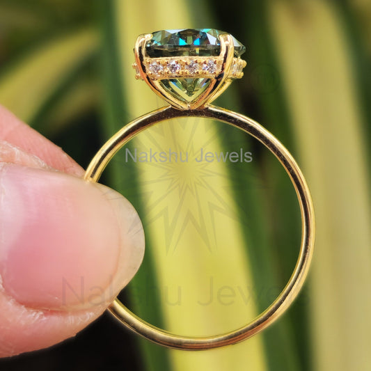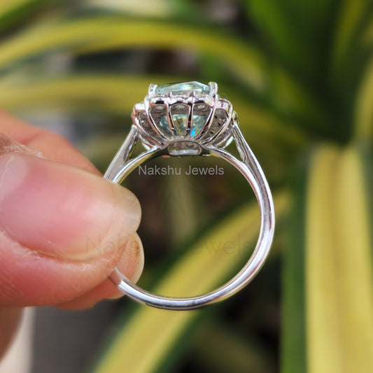 Cyan Blue Round Brilliant Cut Solitaire Moissanite Engagement Ring