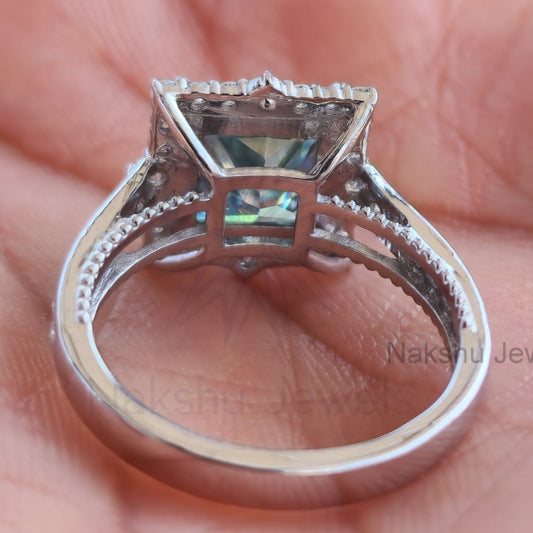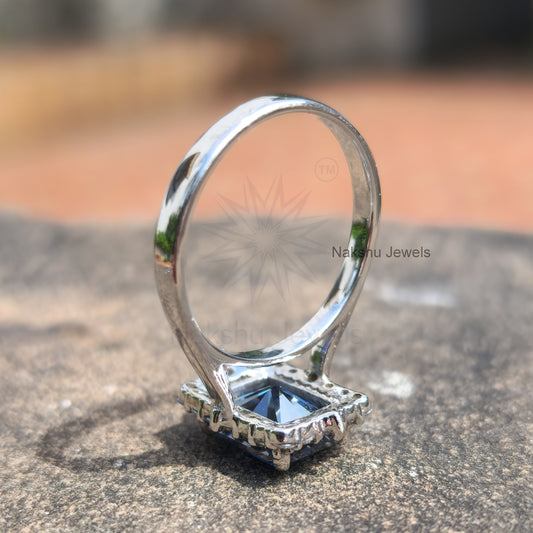 Light Blue Princess Cut Moissanite Halo Engagement Ring