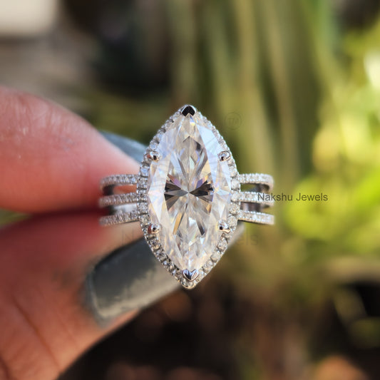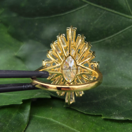 Marquise Cut Moissanite Sunburst Halo Engagement Ring