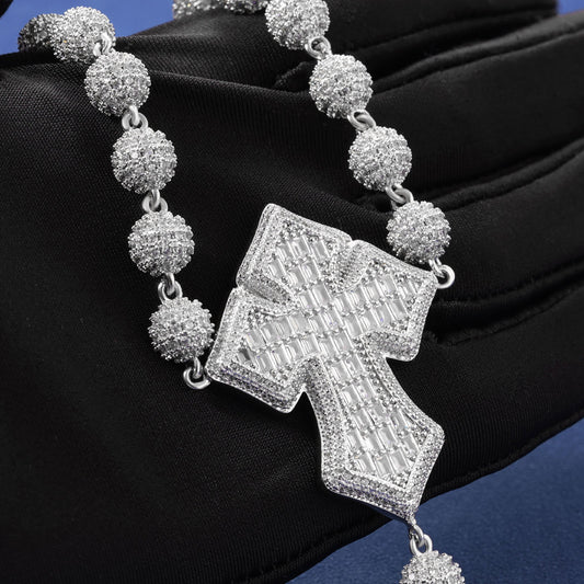 Fully Iced Out Moissanite Cross - Ball Chain Necklace, 925 Sterling Silver Moissanite Hip Hop Chain For Men, Women And Rapper