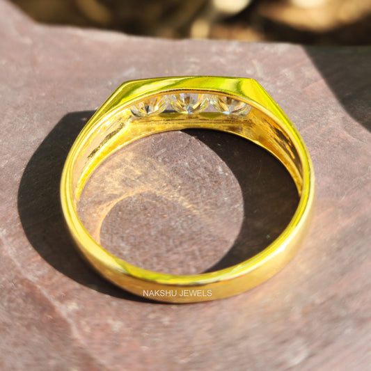 Round Cut Moissanite Men's Three Stone Engagement Ring