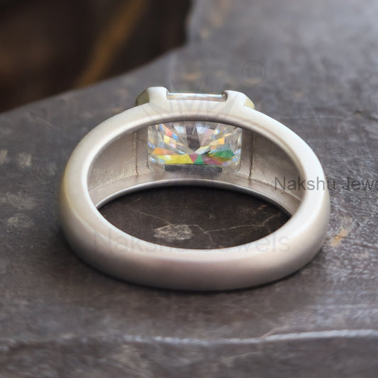 Emerald Cut Moissanite Men's Bezel Set Solitaire Engagement Ring
