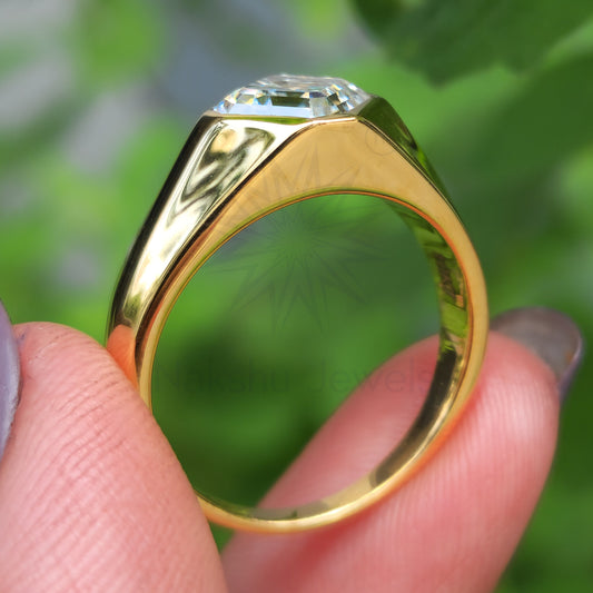 Bezel Set Asscher Cut Moissanite Solitaire Men's Wedding Engagement Ring