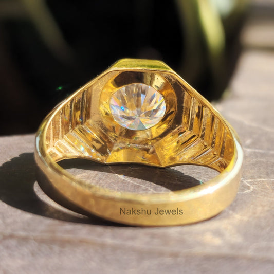 Round Cut Moissanite Solitaire Men's Engagement Ring In 14K Solid Gold
