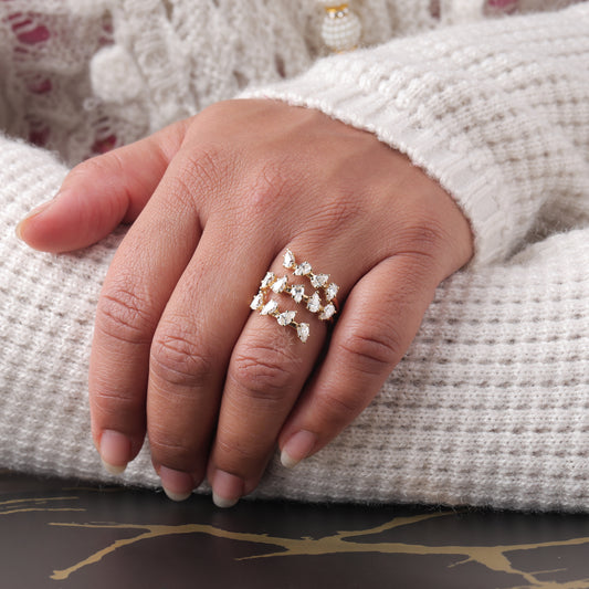 Pear Cut Moissanite Spiral Wrap Ring with Scattered Cluster Design
