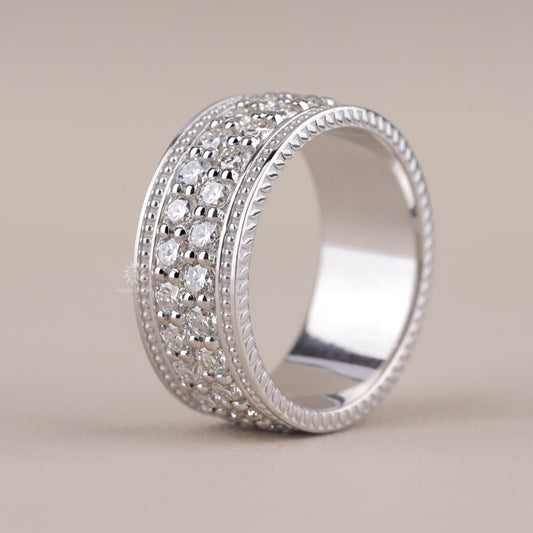 Wide Moissanite Eternity Band with Milgrain Beading and Rope Edge