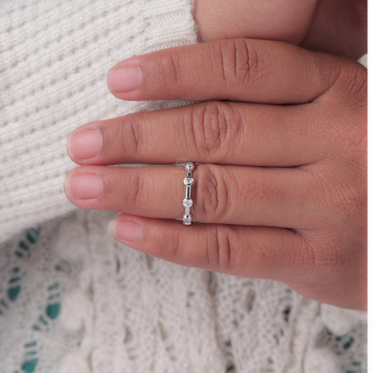 Bezel-Set Moissanite Station Ring with Bar Link Band
