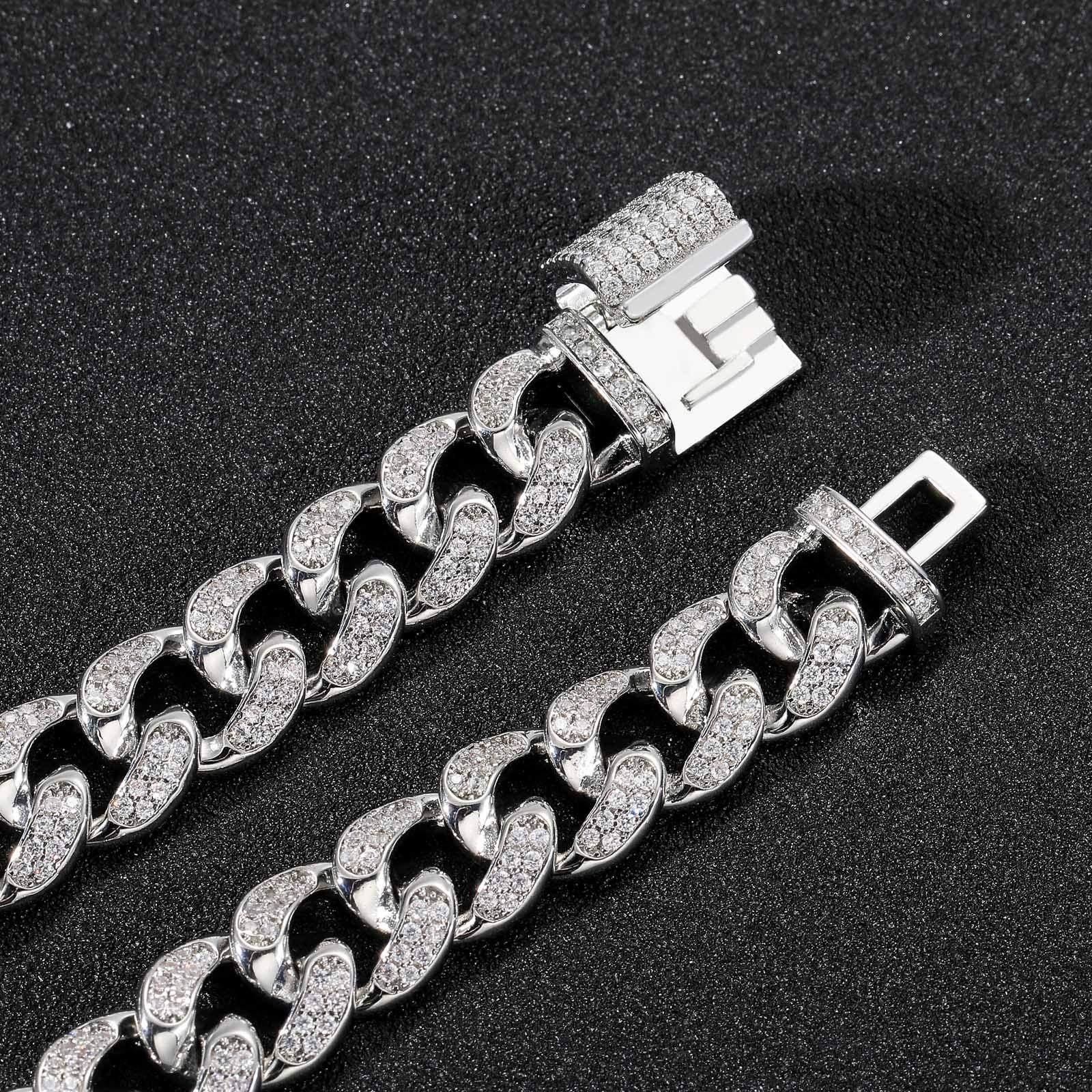 12mm Moissanite Hip Hop Cuban Link Chain Bracelet For Men, 925 Silver Bust Down Iced Out Bracelet