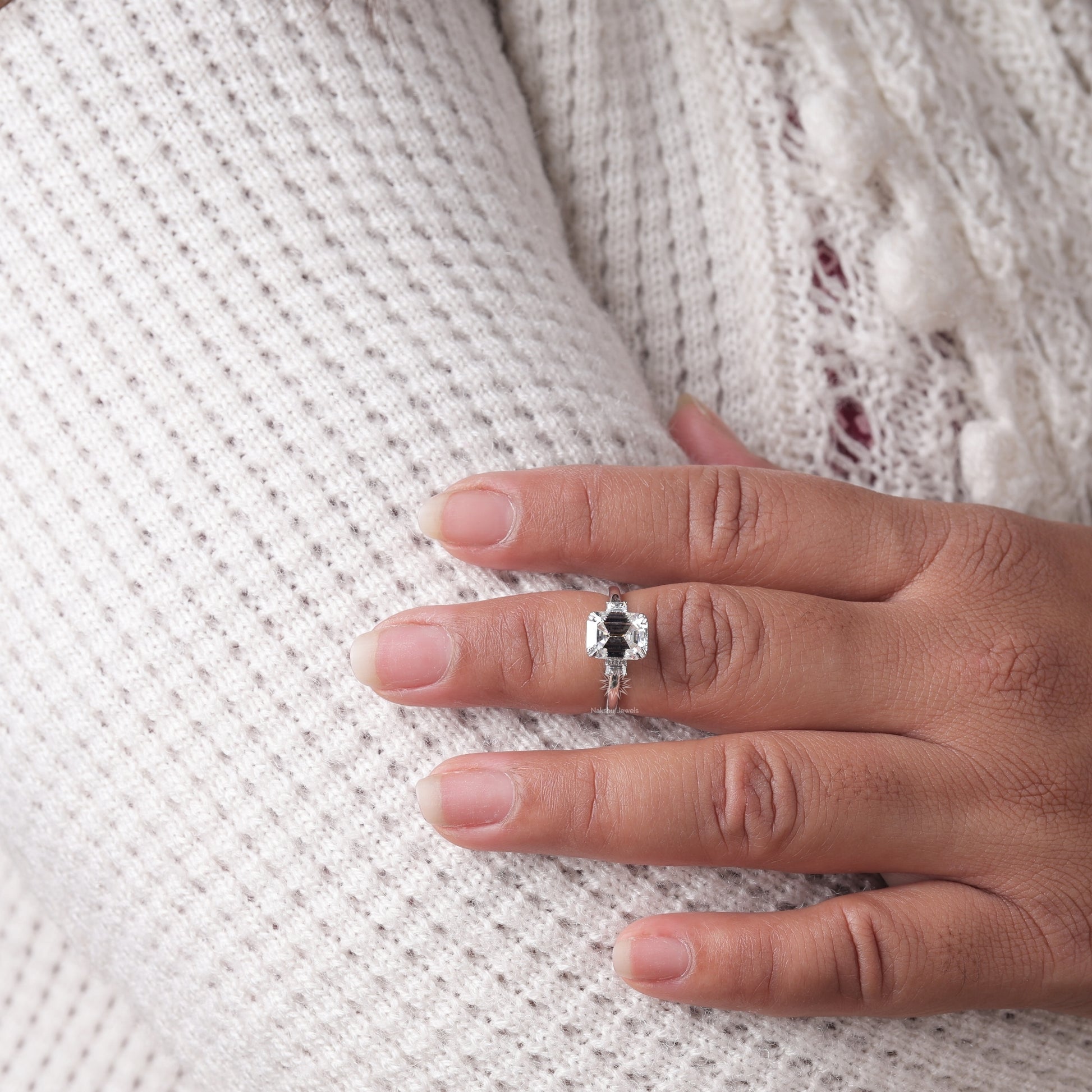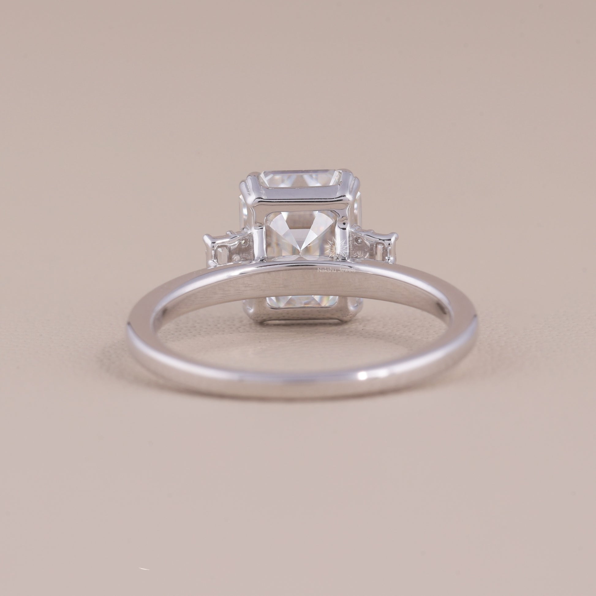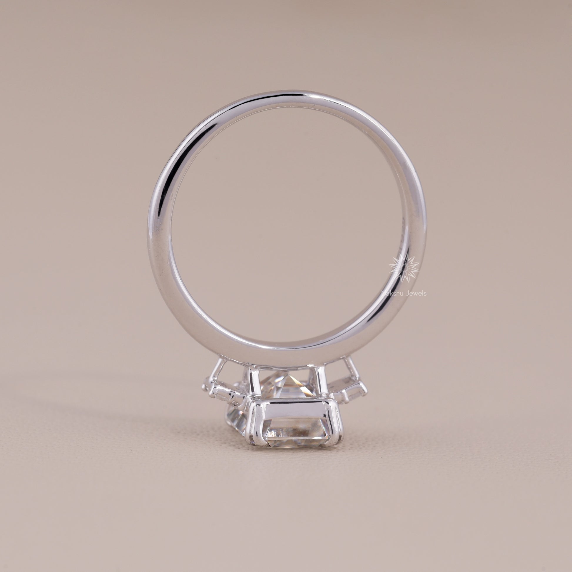 Emerald Cut Moissanite Three Stone Engagement Ring, 14K Gold 3 Stone Wedding Ring For Women