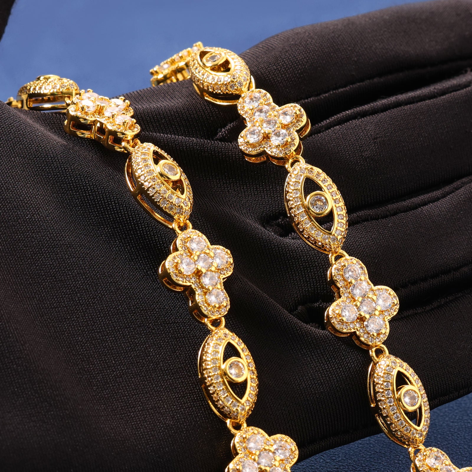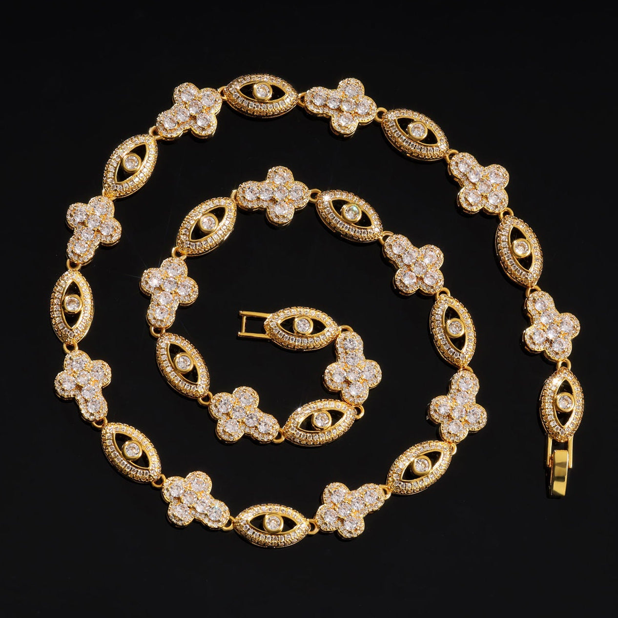 Evil Eye Hip Hop Moissanite Cross Cuban Chains Necklace, Rapper Iced Out Jewelry for Men