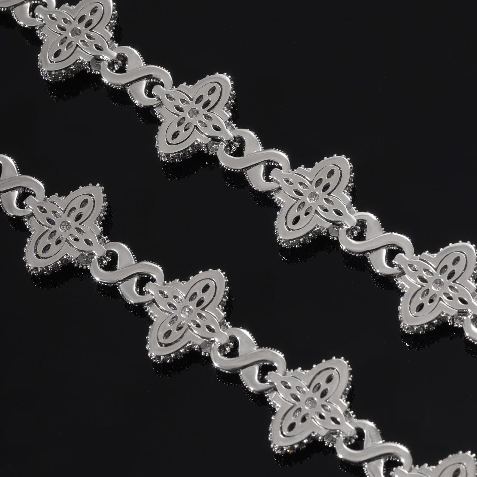 Fully Iced Out Moissanite Four Leaf Clover Chain Necklace, Moissanite Rapper Hip Hop Chain Jewelry