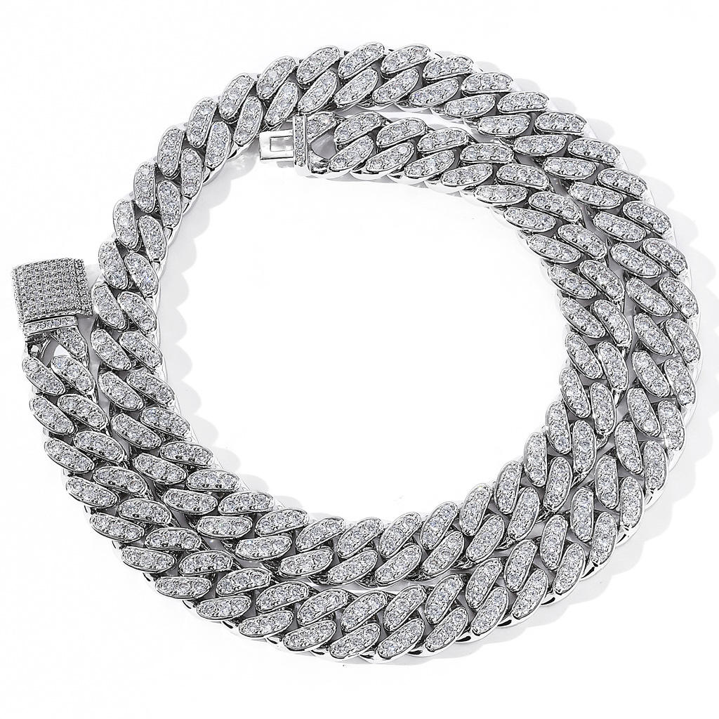 Iced Out Moissanite Cuban Link Chains Necklace, Rapper Hip Hop Moissanite Jewelry