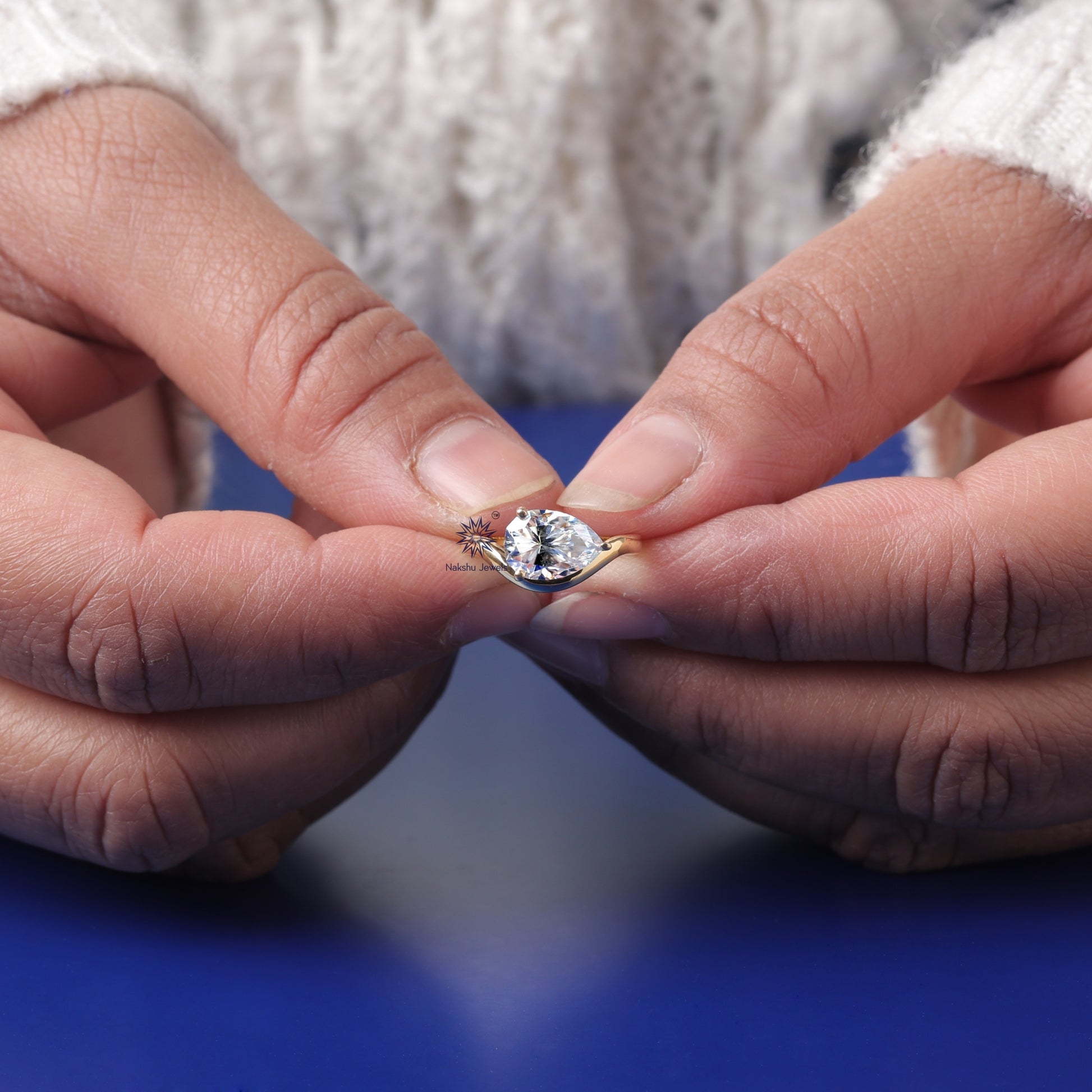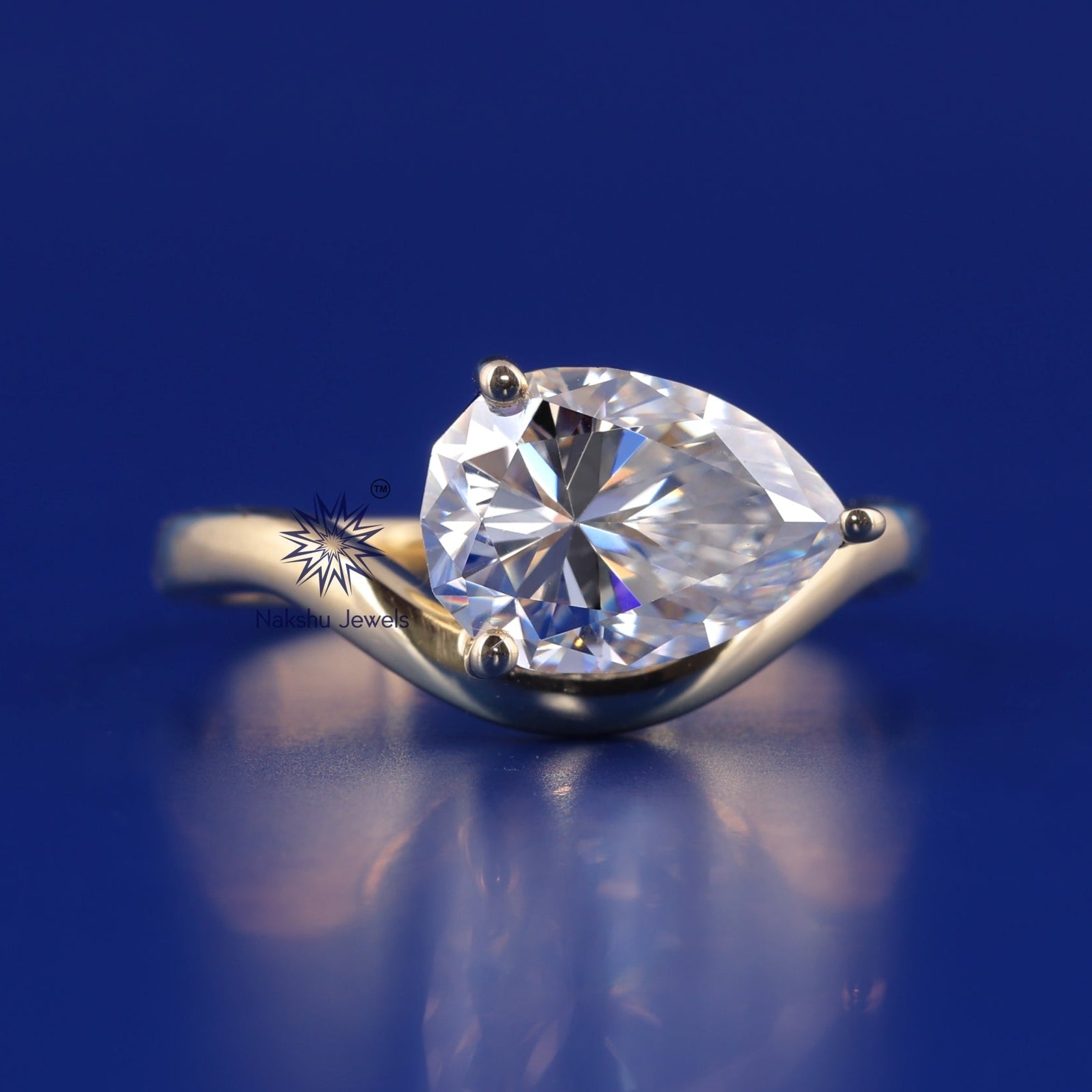 Oval Cut Curved Solitaire Moissanite Engagement Ring