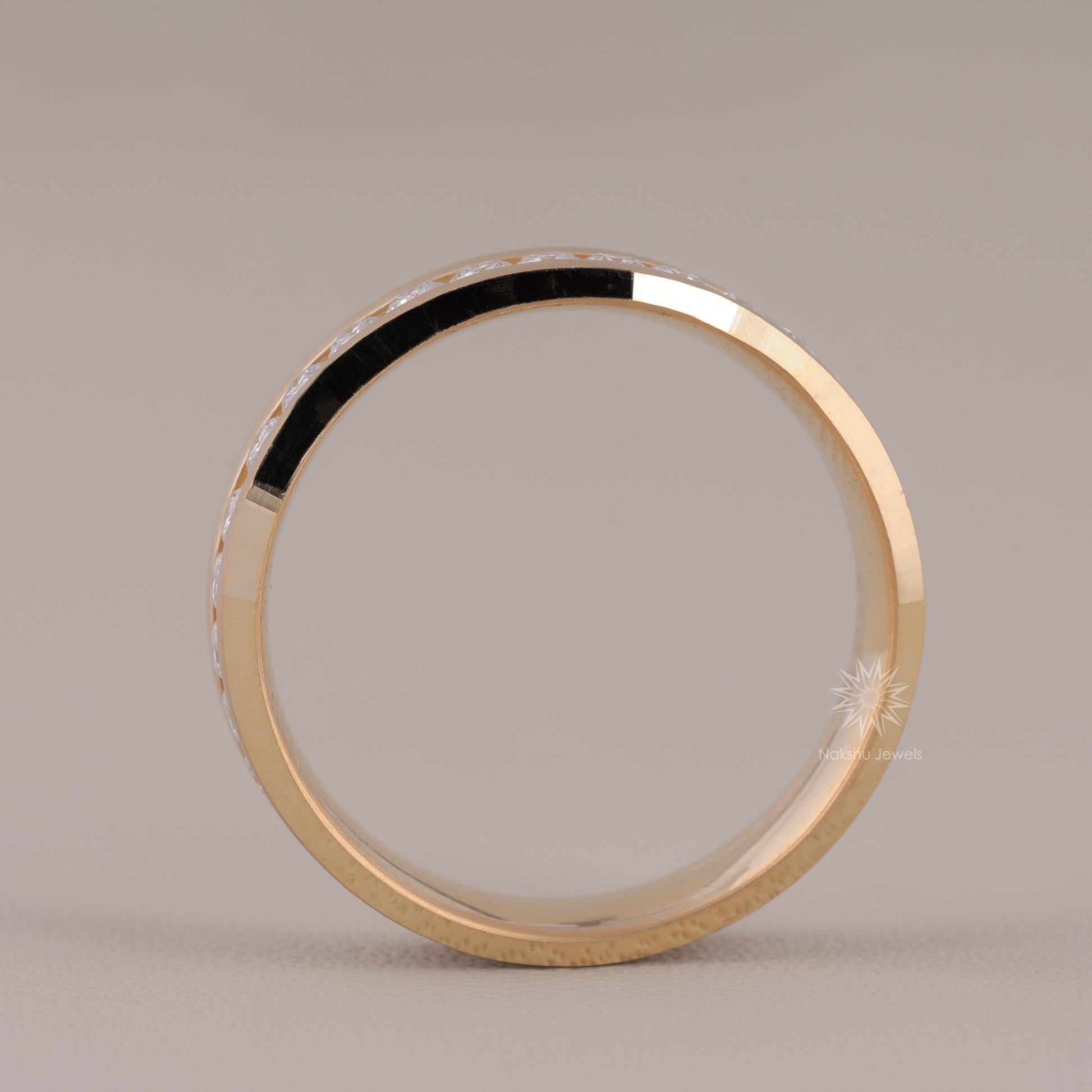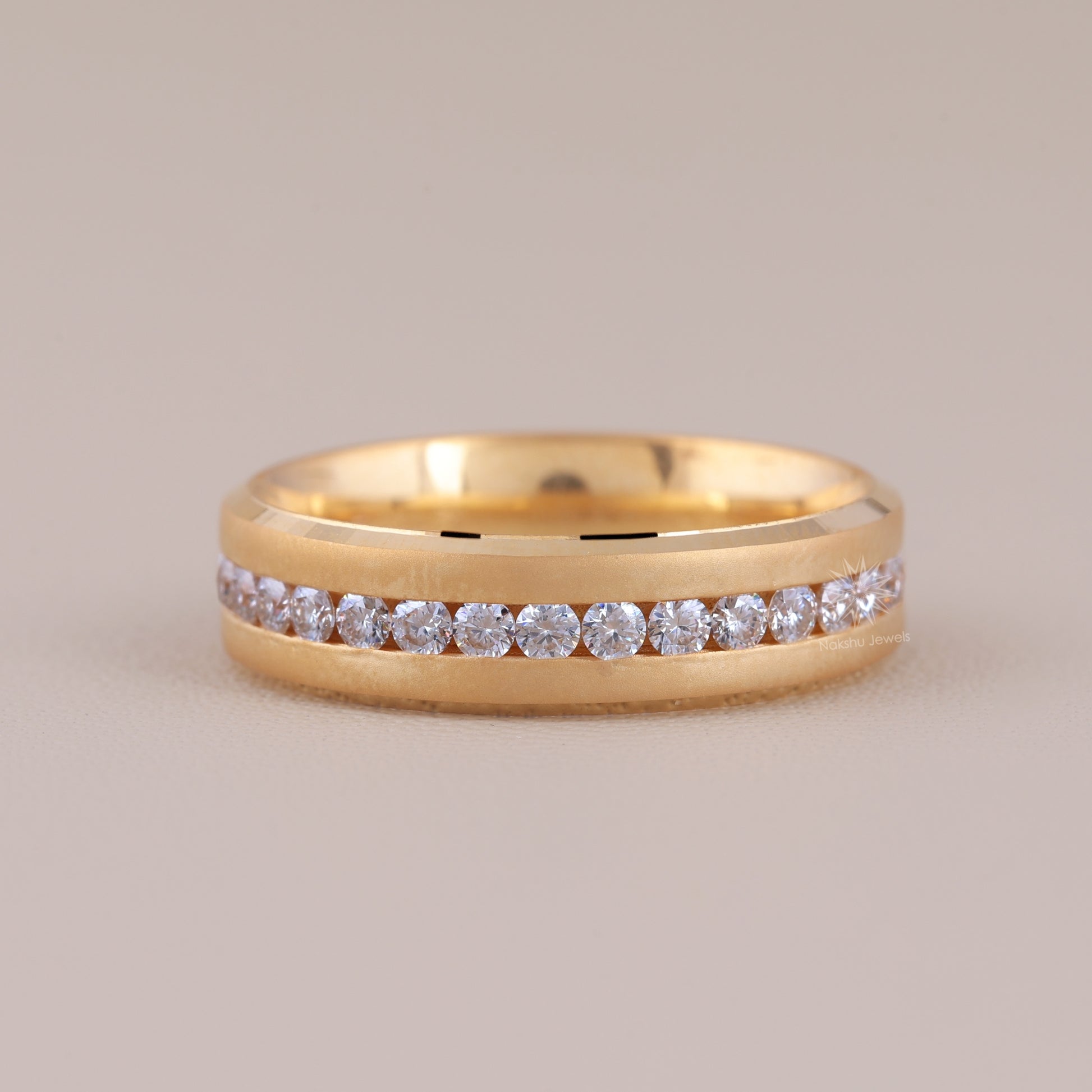 Round Colorless Moissanite Full Eternity Engagement Wedding Band For Him, Solid Gold Men's Channel Set Wedding Band, Anniversary Ring for Men/Man