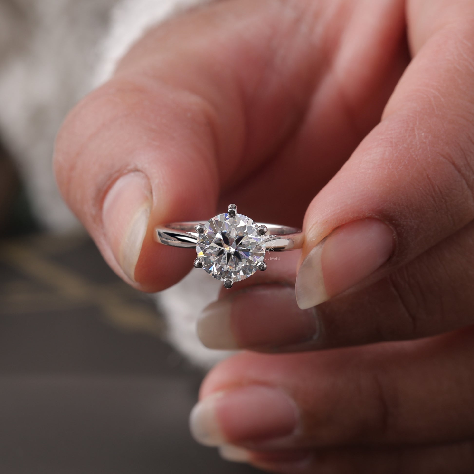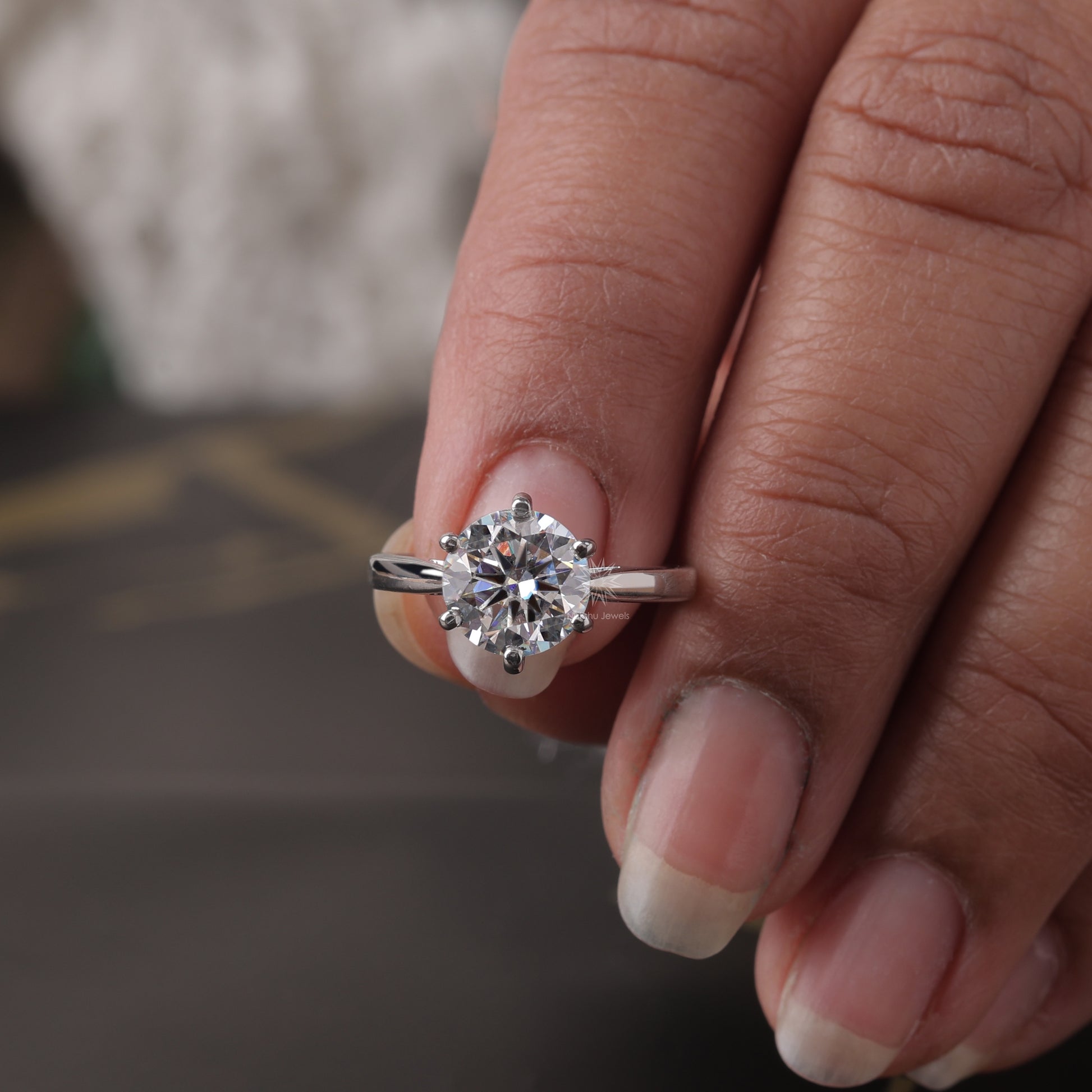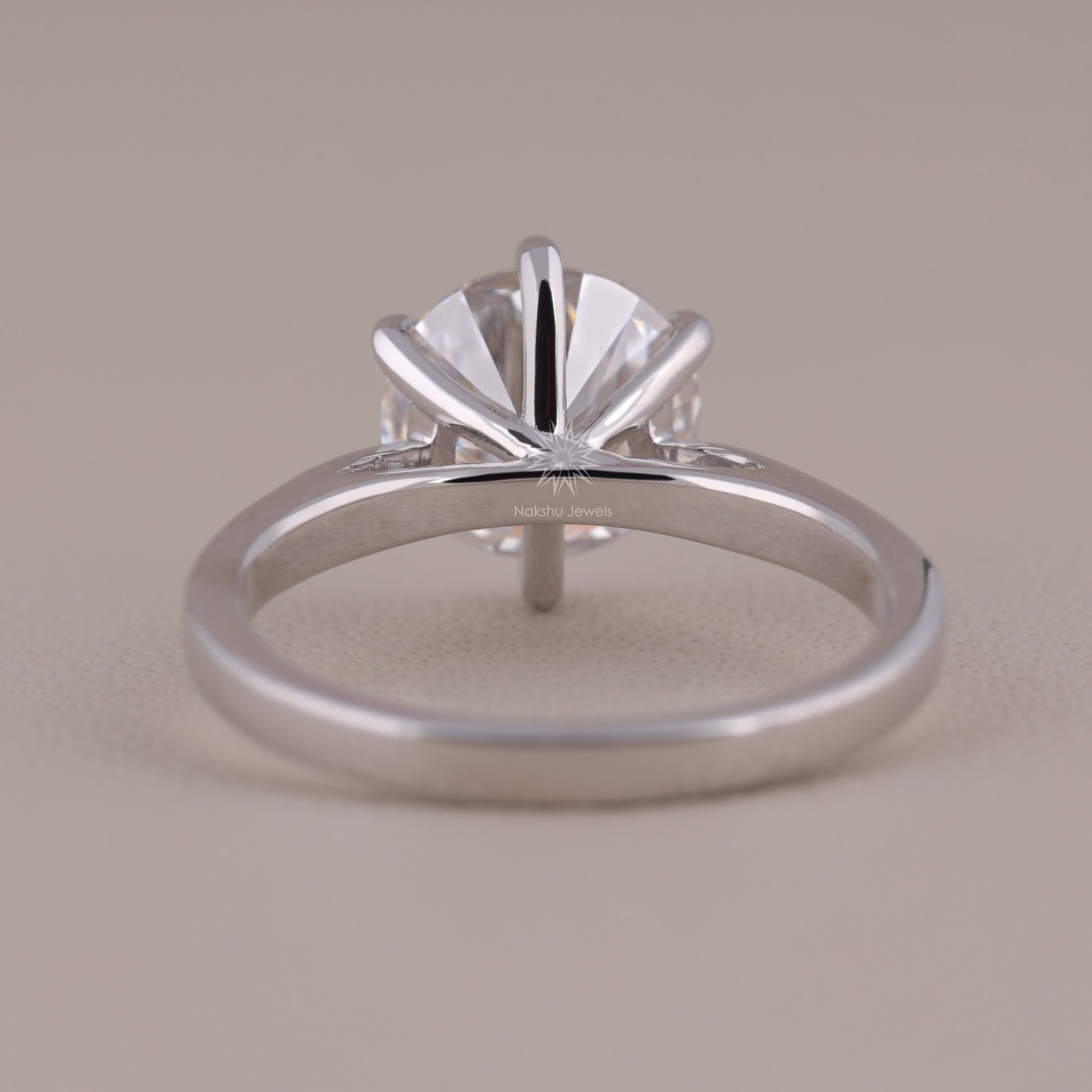 Round Cut Moissanite Solitaire Engagement Ring, 6 Prong Wedding Ring
