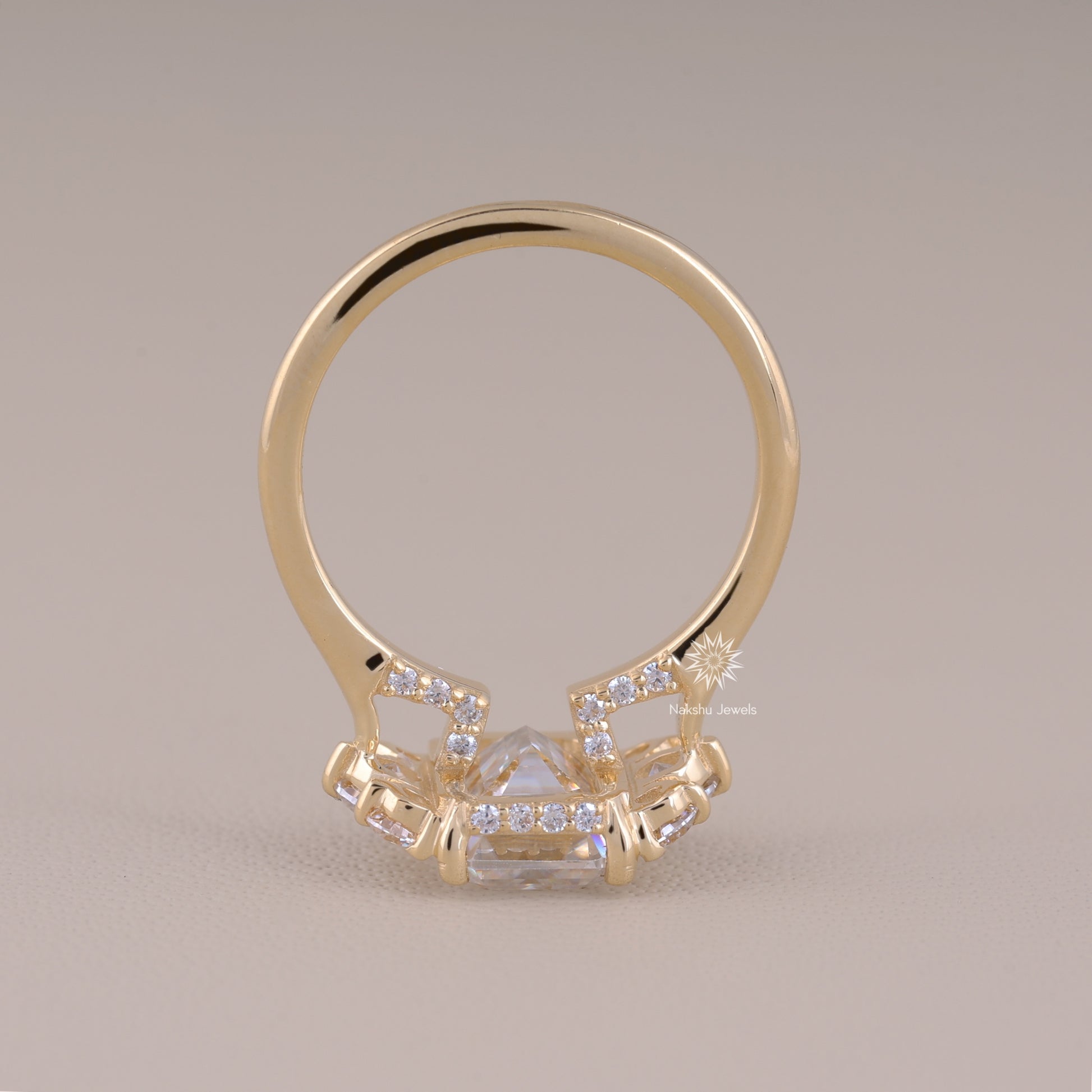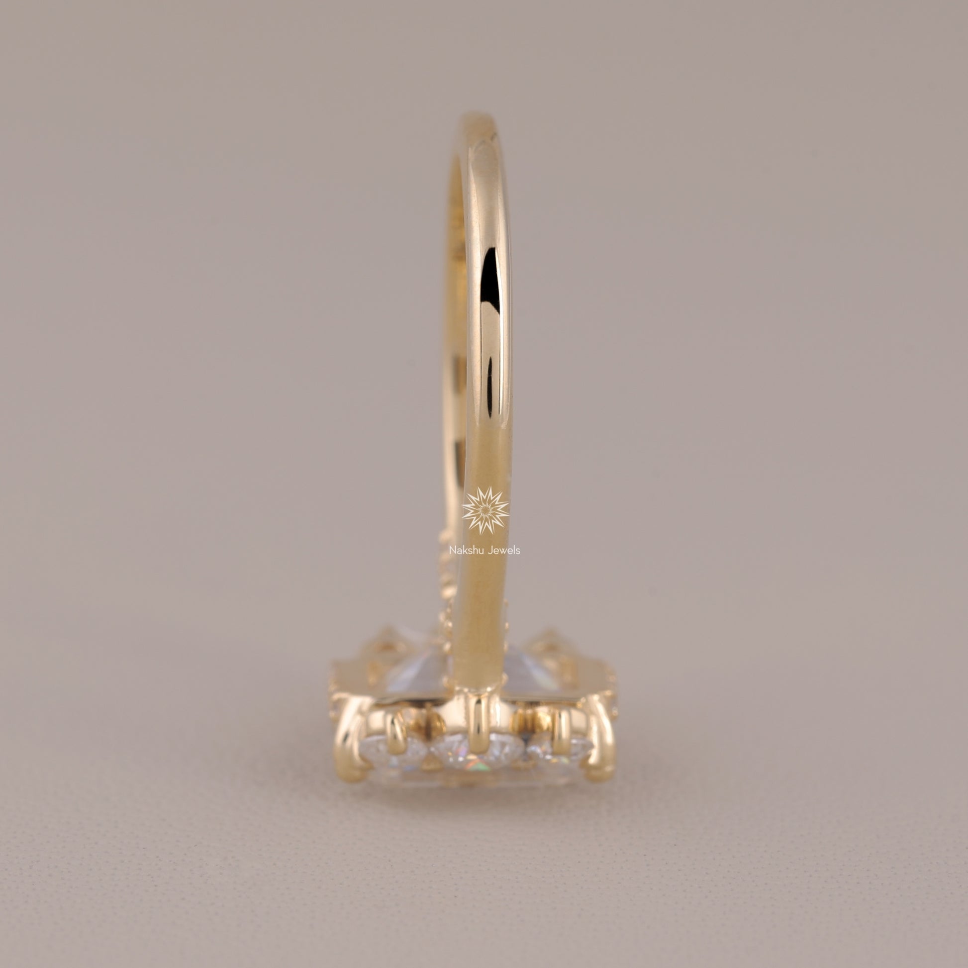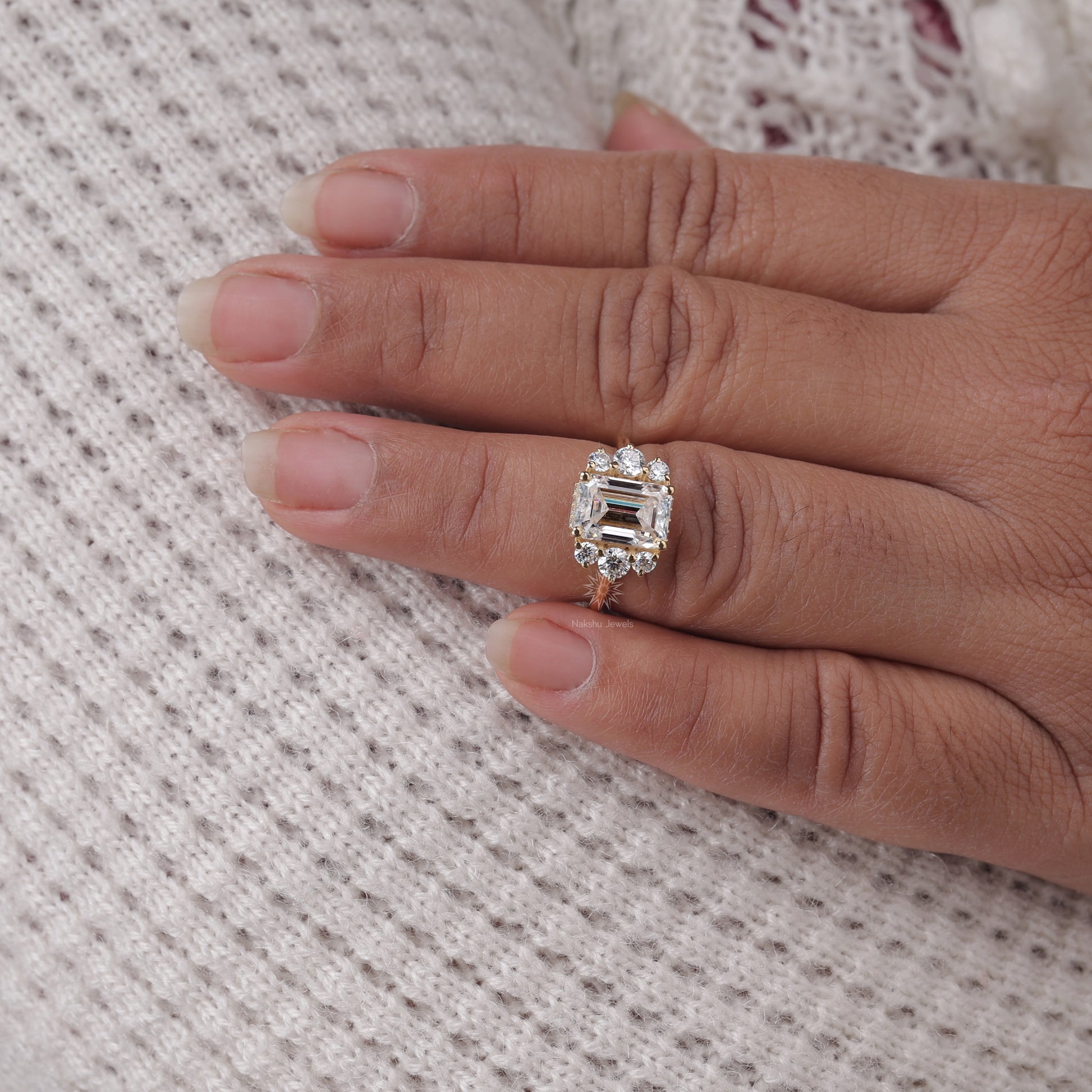Vintage Style Emerald Cut Moissanite Engagement Ring, 14K Solid Gold Cluster Set Wedding Ring For Women